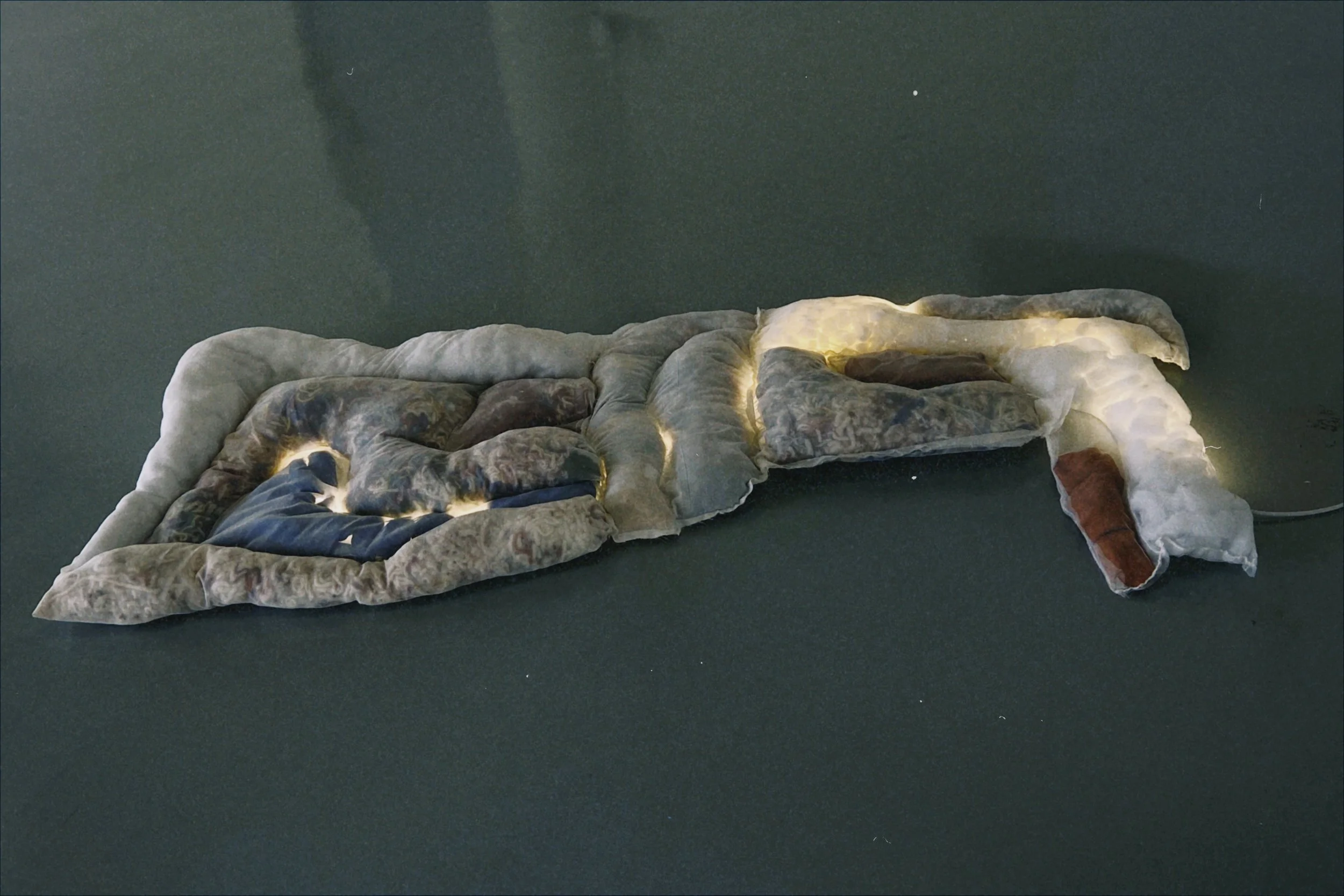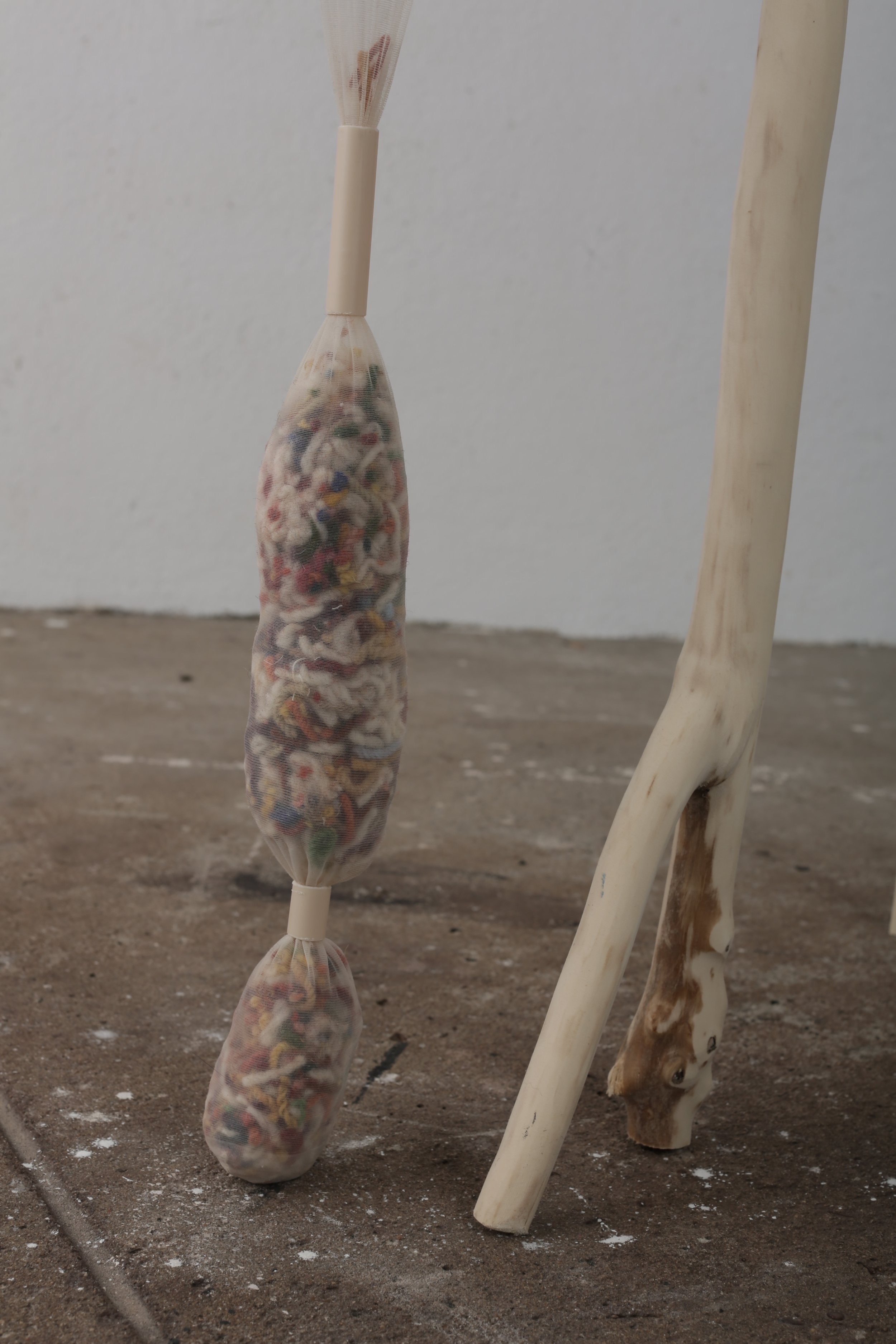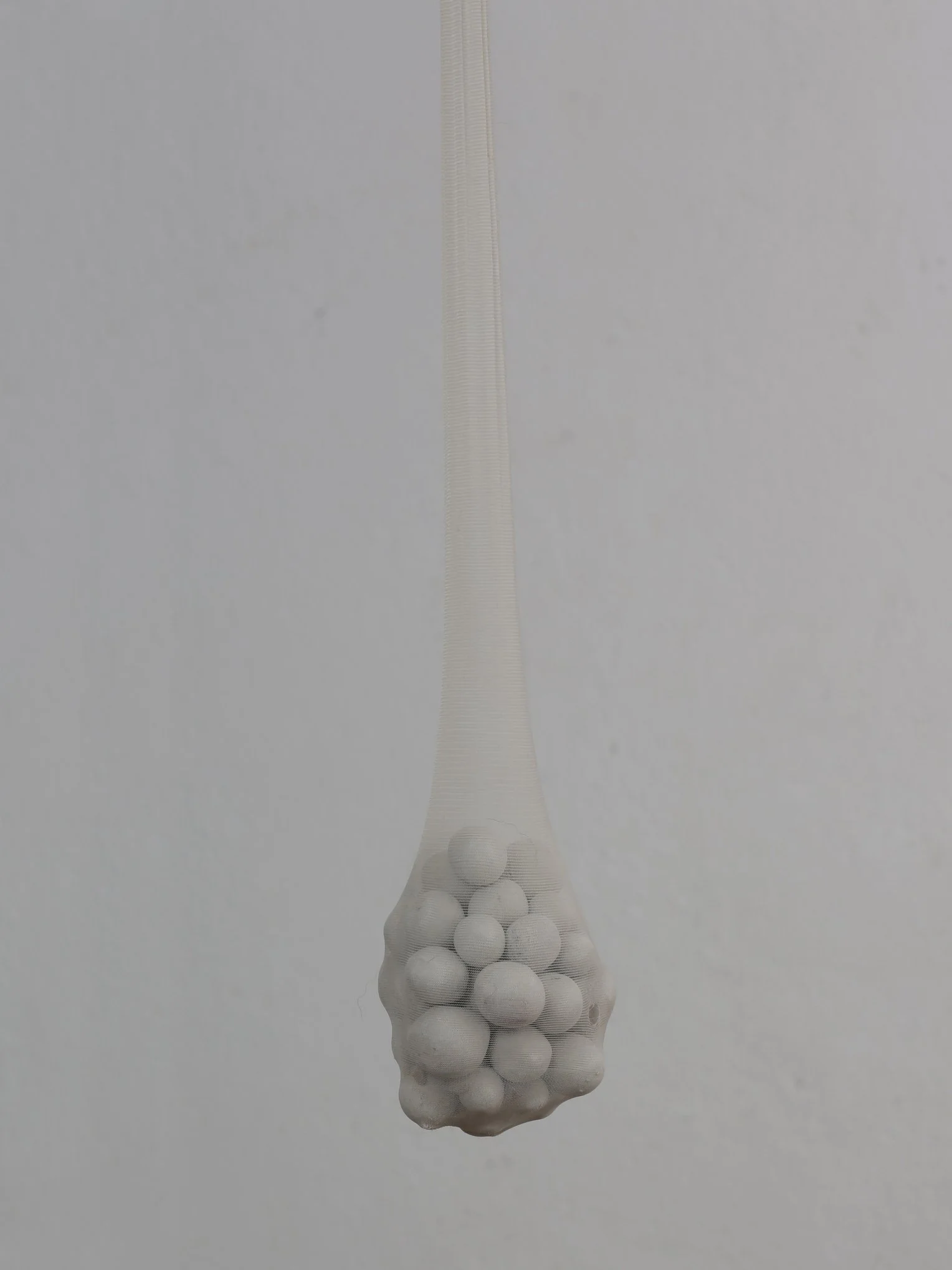 The inversion of roles between materials, subverting expectations about their function and meaning. The central proposal lies in transforming what is conventionally considered structural and rigid into something supported, while the soft material, often associated with fragility, takes on the role of support.